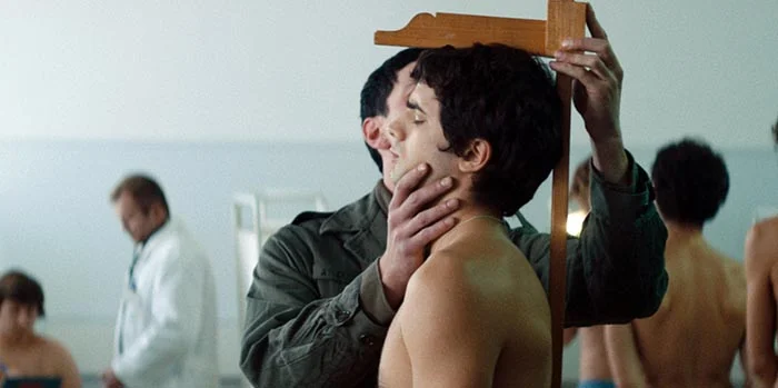 A la même époque où se déroule le film, les hommes doivent aller à l’armée. Vincent Maël Cardona nous révèle un décor blanc, ascéptisé, où tout le monde se ressemble et doit se ressembler. Le personnage et le cinéaste dénoncent toute la stupidité des clichés, allant jusqu’aux retranchements les plus visuels (bonjour le jeu de la biscotte). Philippe s’enferme alors dans le mutisme le plus total. Il est dénué de ses outils de création par une société trop réglée, capricieuse et dépassée.