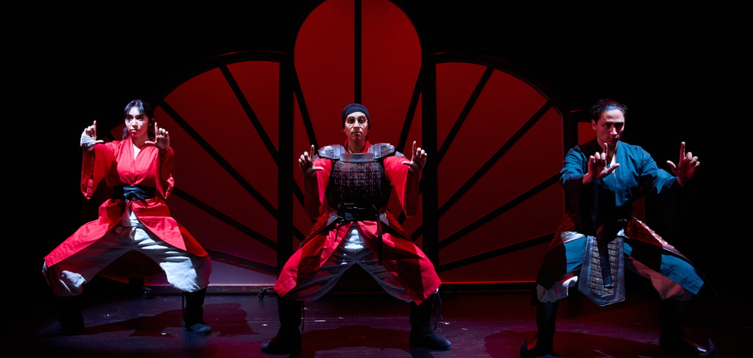 Sur scène, les trois comédiens débordent d’énergie et de générosité. Yassine Ben et Chelsee Gunputh impressionnent par leur capacité à enchaîner les rôles et les changements de costumes, donnant vie aux parents de Mulan ainsi qu’à toute une galerie de personnages secondaires avec beaucoup de rythme et de justesse. Hélia Naji, quant à elle, incarne une Mulan forte, sensible et inspirante, à laquelle on s’attache rapidement. Si certaines scènes gagneraient parfois à être un peu plus projetées vocalement pour faciliter la compréhension, l’engagement des artistes maintient une belle dynamique tout au long du spectacle.