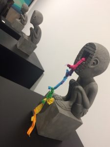 Des œuvres inédites. En effet, en plus des 25 toiles préparées pour l’exposition et tirées de fresques peintes par l’artiste globe-trotteur lors de ses différents voyages, Seth présente pour la première fois une série de sculptures. Ces créations sont le fruit d’une année de travail. Et elles apportent un relief supplémentaire à son univers poétique subtilement teintée de mélancolie et d’onirisme ; tout comme l’installation centrale très réussie, qui s’adapte au décor, comme c’est toujours le cas pour les œuvres de Street art du peintre.