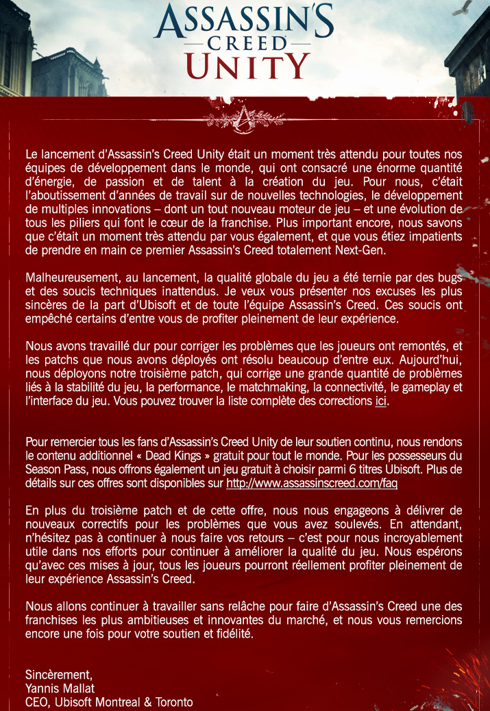 Assassin’s Creed Unity est sorti sur Playstation 4 le 13 novembre 2014